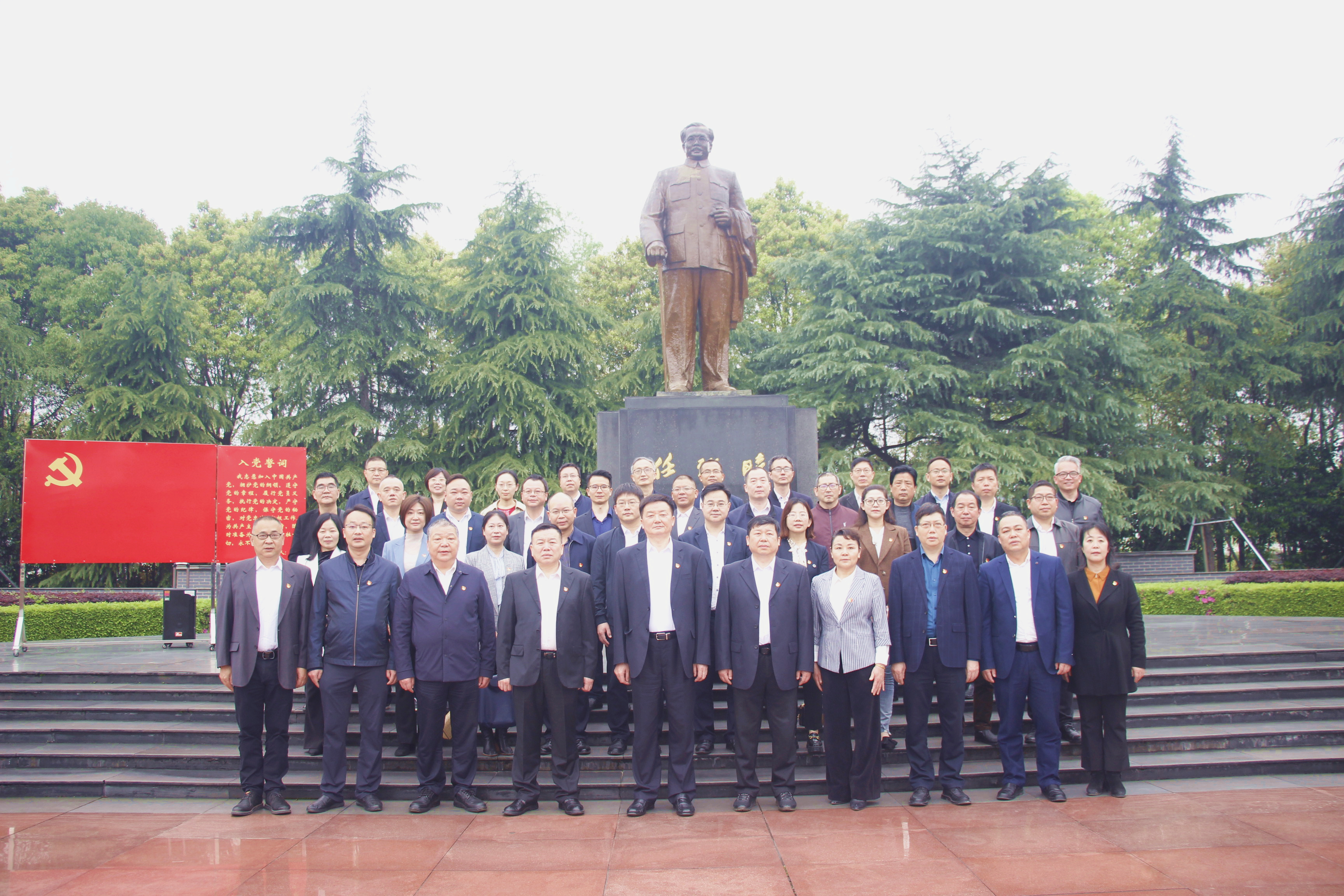 在任弼时铜像广场上,学院党委书记袁维坤同志带领大家重温了入党誓词,再一次面对党旗宣誓“我志愿加入中国共产党!……随时准备为党和人民牺牲一切,永不叛党!”