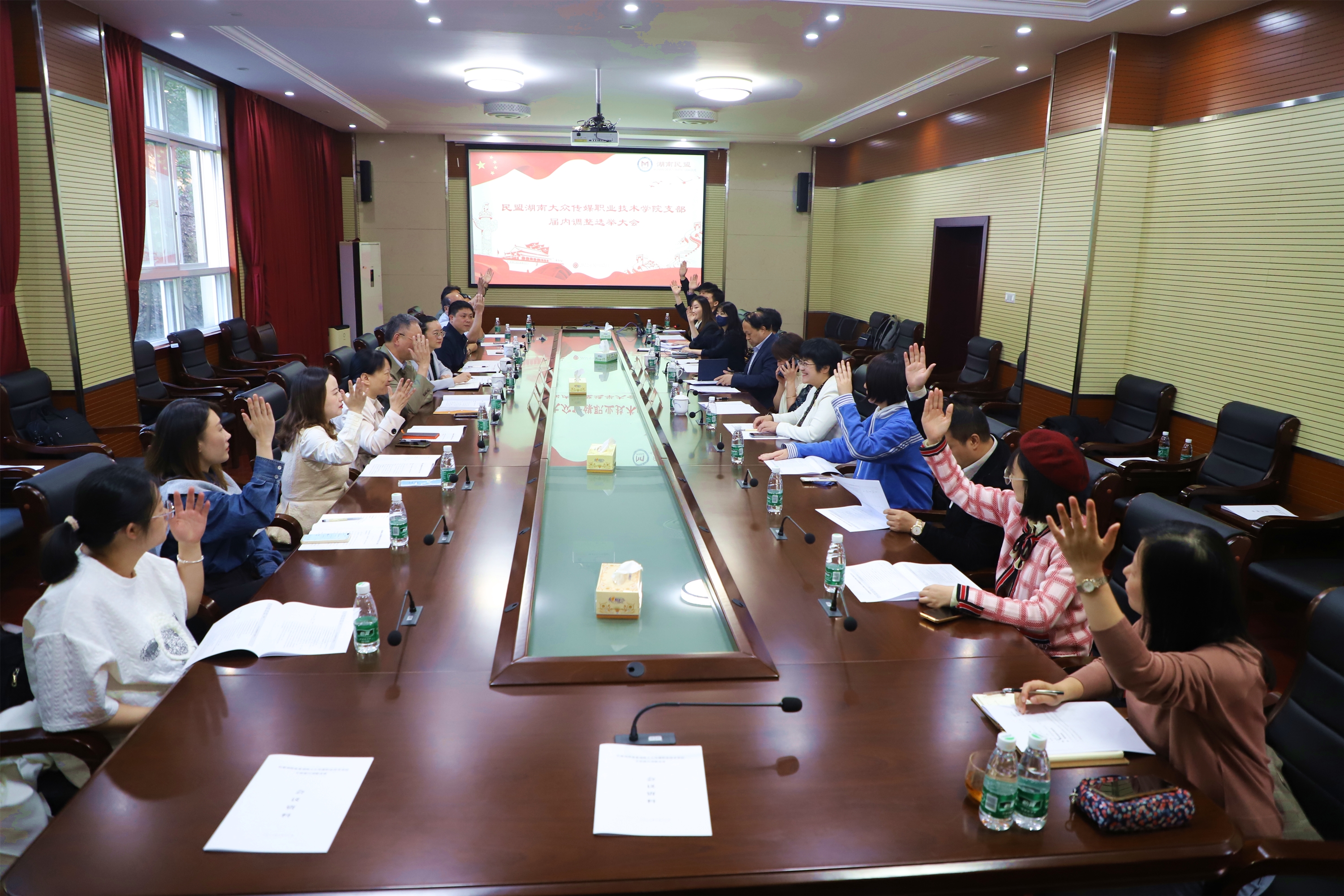 10月13日下午,民盟湖南大众传媒职业技术学院支部举行届内调整选举会议。湖南省政协副秘书长、民盟湖南省委专职副主委胡颖,学校党委书记李三福,民盟湖南省委副主委、湖南大众传媒职业技术学院副校长雷珺麟,民盟湖南科技职业学院支部主委李远林,民盟湖南省委组织处一级主任科员谭宗云,学校宣传统战部相关负责人出席会议。