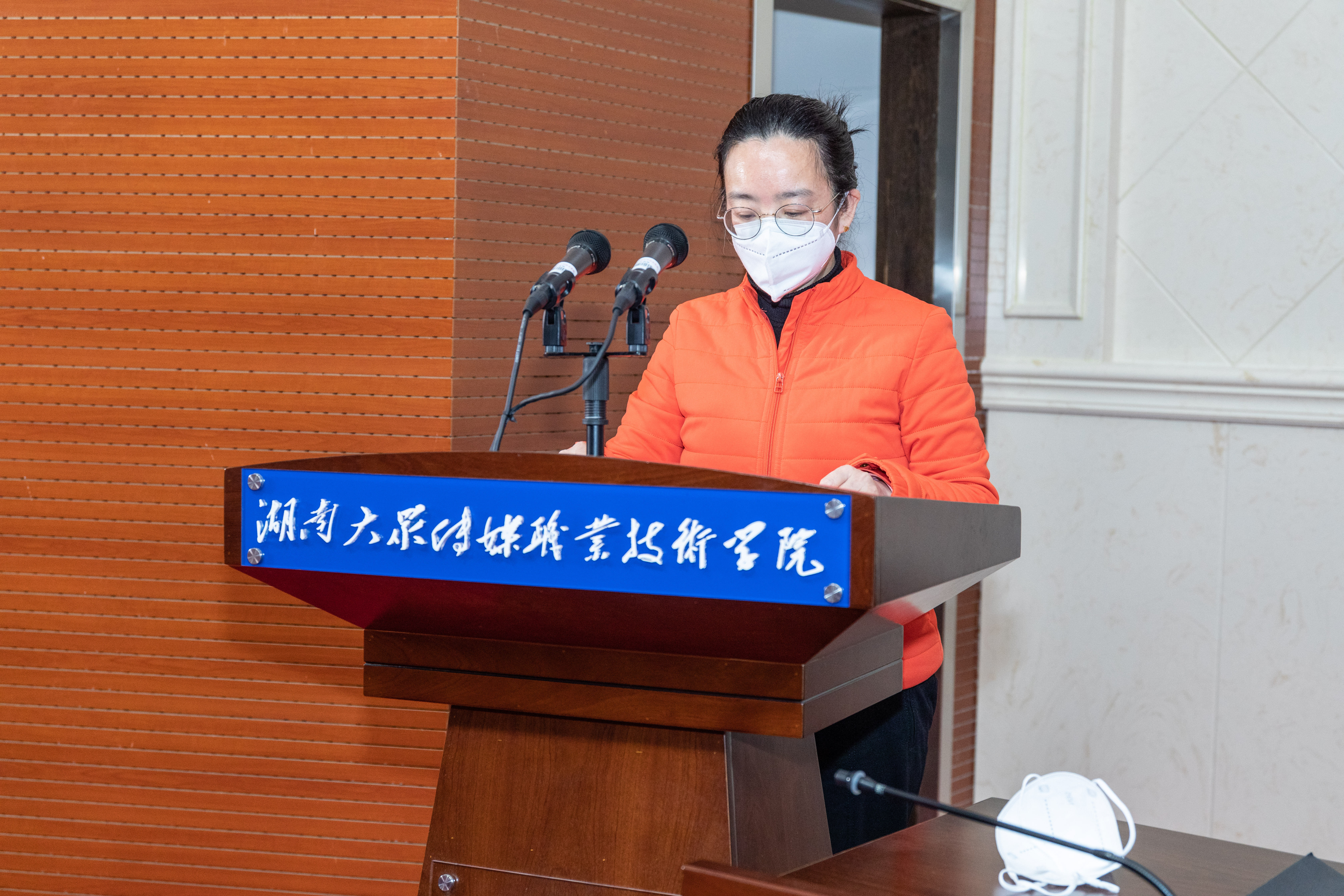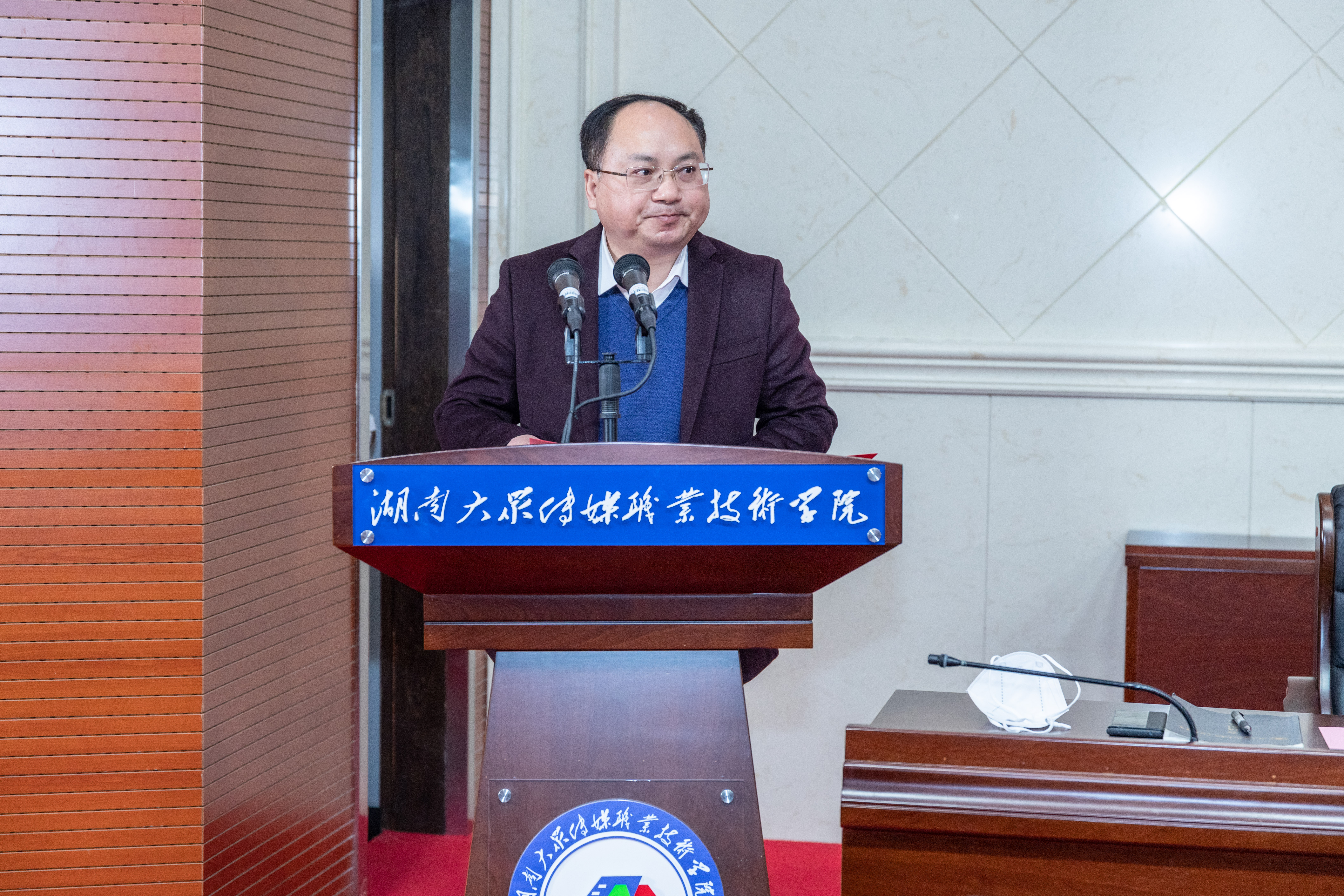 何寄华代表民盟湖南省委对长期以来指导、关心支持民盟事业发展、民盟成员成长、民盟工作开展的省委统战部、教育厅以及湖南大众传媒职院表示感谢和崇高的敬意,对参与助学就业·同心温暖工程的学子表示亲切的问候和美好的祝福。他对“一家一”助学工程和民盟湖南省委会统战理论研究基地提出了三点建议,一是充分发挥教育的基础性和支撑作用,协同发力,聚焦人才培养,办出特色;二是要服务教育改革,落实立德树人;三是推动产教融合,面向实际,提高学生获取知识的能力和解决现实问题的能力,以及手脑贯通的能力。